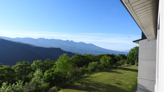 今日は朝から快晴です。朝日がまぶしくて目が覚めました。八ヶ岳もくっきり見えています。車山山頂にリフトを乗り継いでいきます。青空に向かっていくのは気持ちがよいです。レンゲツツジも見えてきました。リフトを降りて振り返ると、八ヶ岳がくっきりと見えます。八ヶ岳の右端に富士山も見えています。富士山 山頂です。昨日の曇り空の山頂とは雰囲気が違います…